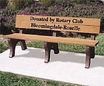 Engraved Letters With Glossy Inlay Color. Identify your business, dedicate a new park, recognize outstanding service. Create a lasting impression for memorials, donor recognition, or fundraising purposes. Recycled plastic benches will last a lifetime. Beautifully engraved letters with glossy color inlay that matches the frame color. Customize this bench with a personal name, message, or company name . Maintenance-free and easy to assemble.