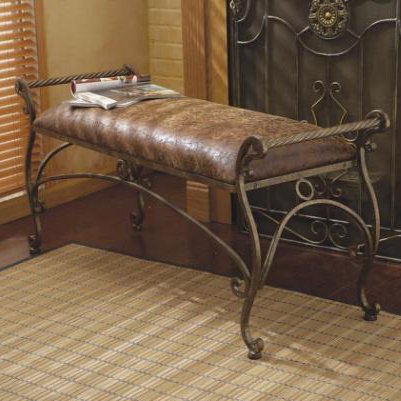 WHAT'S INCLUDED: Bench Midwest CBK's Curved Leg Bench With Faux Leather lets you bring a rustic style bench right to your home. Made with an iron frame in a copper and gold finish, has a faux leather seat, low scrollwork armrests, and curved legs, giving it a unique look. Conveniently sized, this bench can work anywhere, from a bathroom vanity to a backyard patio. It's a sure upgrade to any living space, indoors or out.